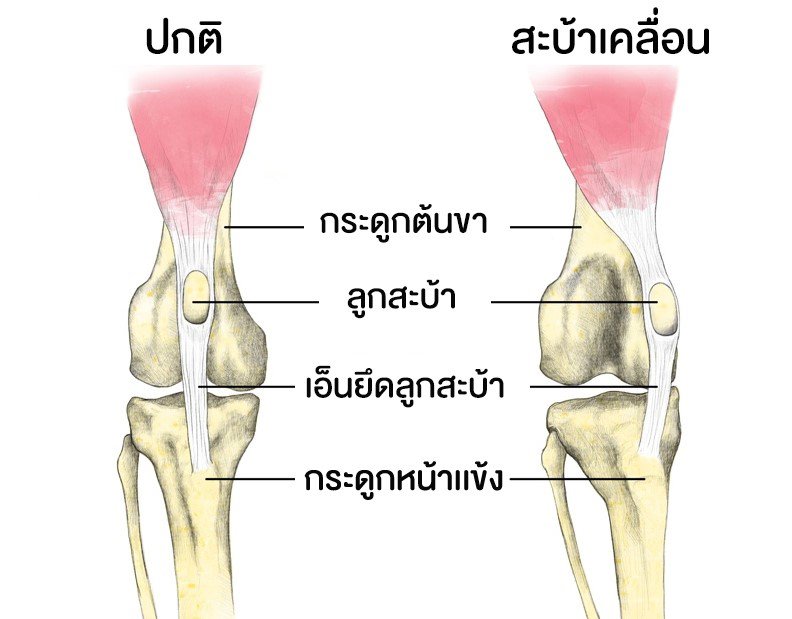 “สะบ้า”หรือ “ลูกสะบ้า (patellar) เป็นกระดูกที่มีลักษณะกลมรี แบนๆ วางอยู่บนร่องกลางหัวเข่า โดยมีเอ็นรวมยึดเอาไว้ให้อยู่ในเบ้าสะบ้า เมื่อใดก็ตามที่มีปัจจัยโน้มนำ เช่น เบ้าสะบ้าตื้นหรืออุบัติเหตุ ก็มีโอกาสที่สะบ้าจะเคลื่อนออกจากเบ้าสะบ้าได้