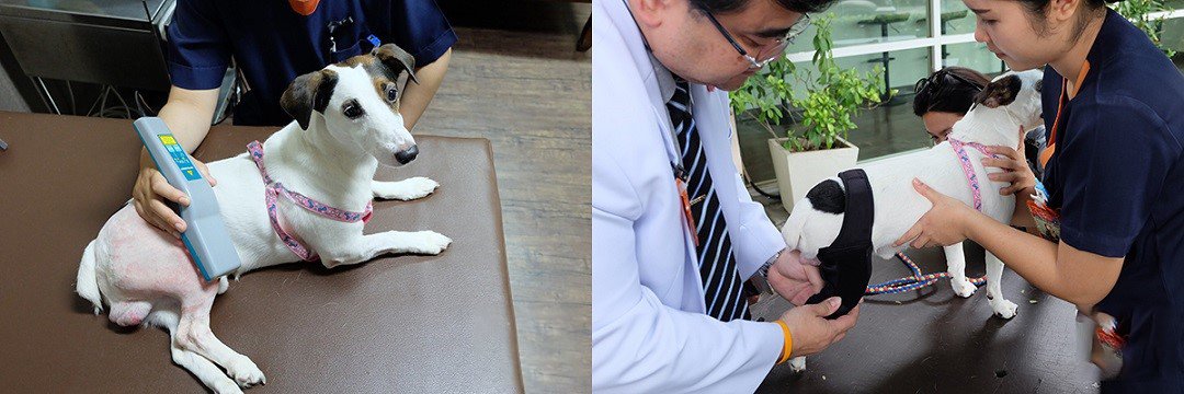 แต่ถ้ามีอาการระดับ 2 ขึ้นไป อาจต้องรับการผ่าตัดร่วมกับการทำกายภาพบำบัดอย่างสม่ำเสมอ โดยหลังการผ่าตัด 72 ชั่วโมงแรก ให้ประคบเย็นบริเวณที่ผ่าตัด เพื่อช่วยลดการอักเสบและลดบวม หลังจากนั้นจึงเริ่มใช้เครื่องมือกายภาพ ไม่ว่าจะเป็นการบำบัดด้วยเลเซอร์ช่วยลดความเจ็บปวด (เลเซอร์บำบัด คืออะไร <<คลิก>> ) และกระตุ้นการหายของแผล และการทำธาราบำบัดในสุนัขเพื่อเสริมสร้างความแข็งแรงให้กับกล้ามเนื้อ และทำให้การทำงานของข้อต่อดีขึ้น