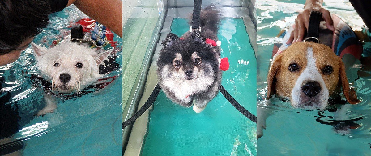 การทำกายภาพบำบัดสุนัข ด้วยการว่ายน้ำหรือการเดินสายพานใต้น้ำ (ธาราบำบัด)