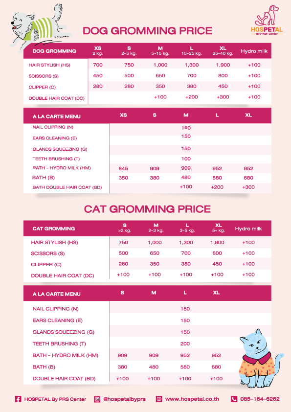 อัตราค่าบริการอาบน้ำ ตัดขน
