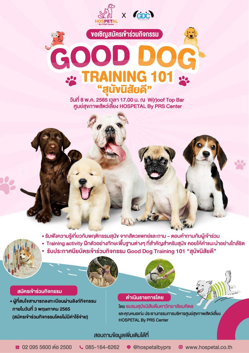 ขอเชิญสมัครเข้าร่วมกิจกรรม Good Dog Training 101 “สุนัขนิสัยดี”