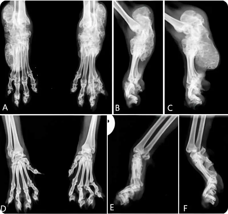 แต่ถ้าการกลายพันธุ์แบบ mutation/mutation ก็จะมีอาการรุนแรงมากๆ เช่น กระดูกเท้า ขา กระดูกสันหลังผิดรูป ข้อเสื่อมรุนแรง ขยับตัวได้ลำบากและมีความเจ็บปวด