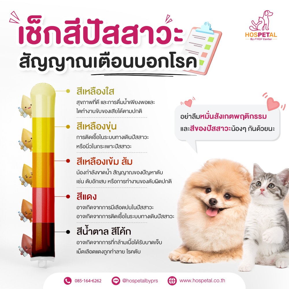 นอกจากการสังเกตสีของปัสสาวะของน้องหมาน้องแมวแล้ว ผู้ปกครองควรสังเกตพฤติกรรมการขับถ่ายของน้องๆด้วยนะคะ หากพบพฤติกรรมที่ผิดปกติ เช่น มีอาการเบื่ออาหาร ไม่ร่าเริง อาเจียน ปัสสาวะน้อยกว่าปกติ มีความลำบากในการปัสสาวะหรือปัสสาวะบ่อยผิดปกติ ควรรีบพาน้องๆ ไปพบสัตวแพทย์เพื่อวินิจฉัยอาการ ยิ่งตรวจพบเร็ว