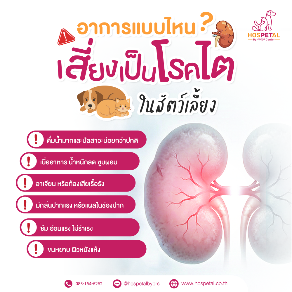 โรคไตเป็นหนึ่งในปัญหาสุขภาพที่พบได้บ่อยทั้งในสุนัขและแมว โดยเฉพาะสัตว์เลี้ยงที่มีอายุมาก โรคนี้มักค่อย ๆ ดำเนินไปอย่างเงียบ ๆ และแสดงอาการชัดเจนเมื่อไตสูญเสียประสิทธิภาพในการทำงานไปแล้วในระดับหนึ่ง ทำให้หลายครอบครัวพาน้องหมาน้องแมวมาพบสัตวแพทย์ช้าเกินไป การรู้เท่าทันว่า อาการแบบไหนเสี่ยงเป็นโรคไต จะช่วยให้เจ้าของสามารถสังเกตความผิดปกติและพาน้องเข้ารับการตรวจรักษาได้ตั้งแต่ระยะแรก