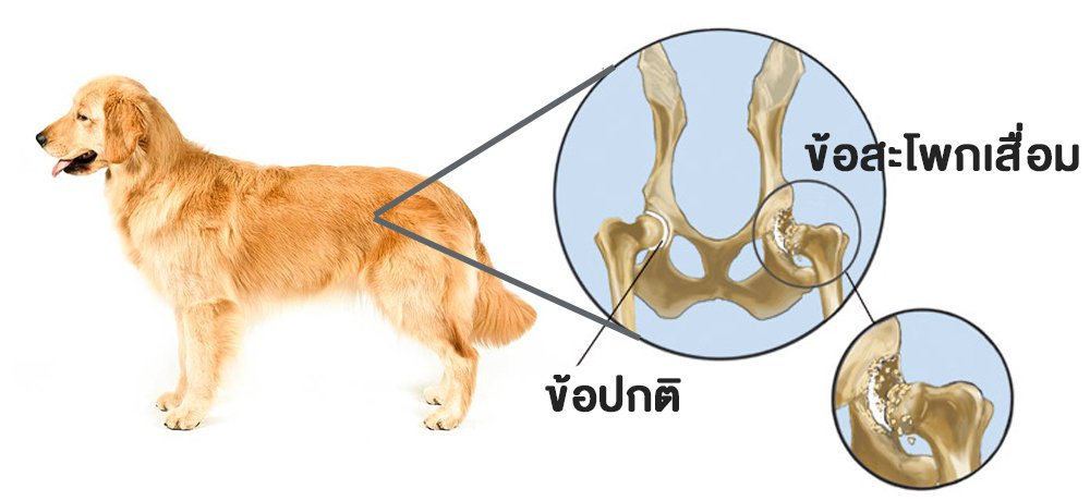 โรคข้อสะโพกเสื่อม (Hip dysplasia) เป็นโรคทางกระดูกและข้อที่พบได้บ่อยในสุนัขพันธุ์ใหญ่ เช่น โกลเดน รีทีฟเวอร์ล, ไซบีเรียน ฮัสกี, ลาบาดอร์ รีทีฟเวอร์ และ เยอรมันเชฟเฟิร์ด เป็นต้น (อ่านบทความ การรักษาโรคข้อสะโพกเสื่อมในสุนัข <<คลิก>> )