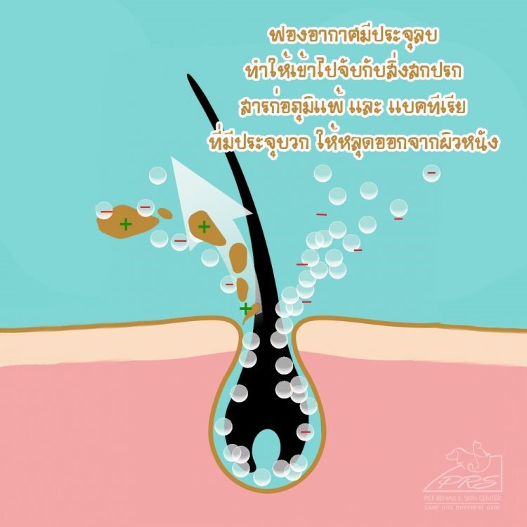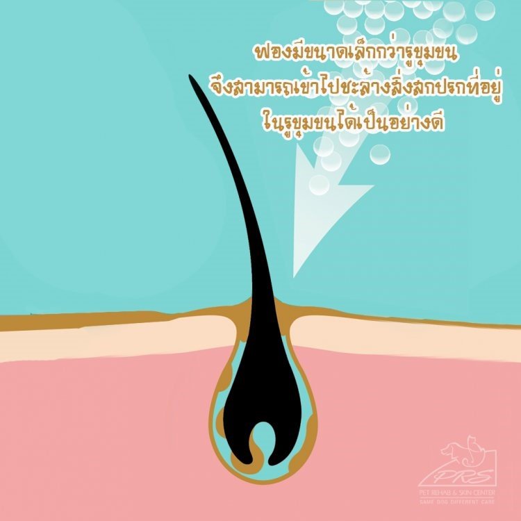 ด้วยคุณสมบัติดังกล่าว การอาบแช่ตัวด้วย Hydromilk จึงเหมาะกับสัตว์เลี้ยงที่มัปัญหา เรื่องผิวหนังอักเสบ มีกลิ่นตัว หรือสะเก็ดรังแคมาก และเนื่องจากฟองออกซิเจนเหล่านี้มีขนาดเล็กมากเล็กกว่ารูขุมขน จึงสามารถเข้าไปชะเอาตัวไรขี้เรื้อนขุมขน (Demodex) ออกมาได้ด้วย